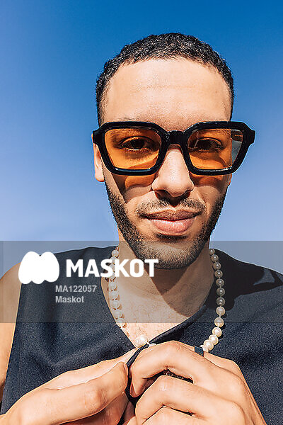 Porträtt av man med glasögon som står i solen
