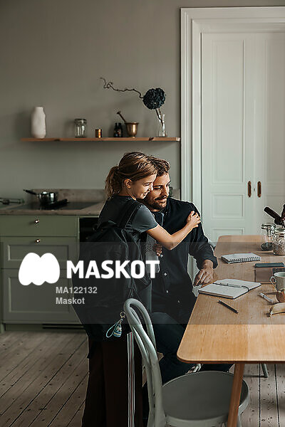 Dotter kramar pappa i kök