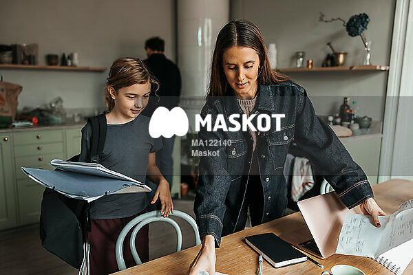 Mamma ger plats åt dotter att göra läxor