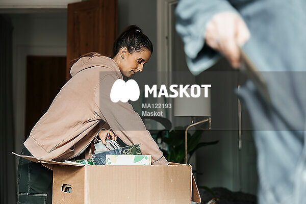 Kvinna packar ut inredning ur kartonglåda