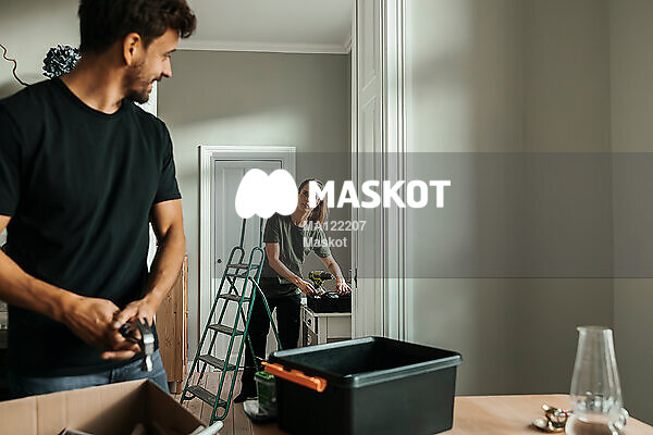 Man och kvinna renoverar lägenhet