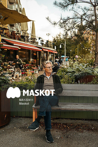Äldre man sitter med bok på bänk