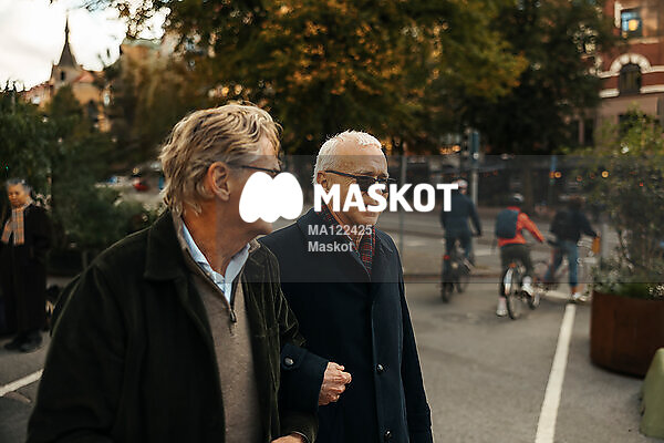 Äldre män går i stad