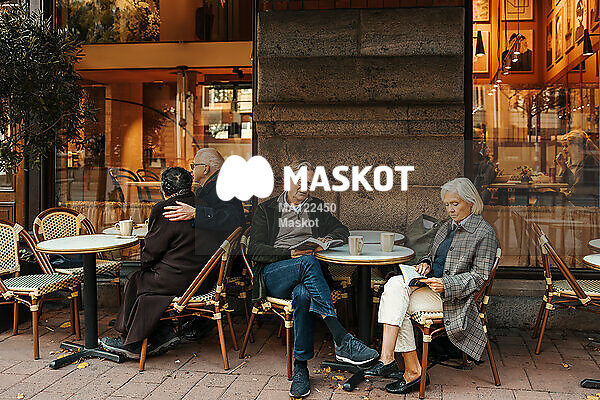 Äldre par läser bok på café