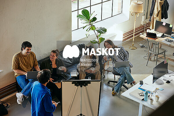 Manliga och kvinnliga entreprenörer jobbar på kontor
