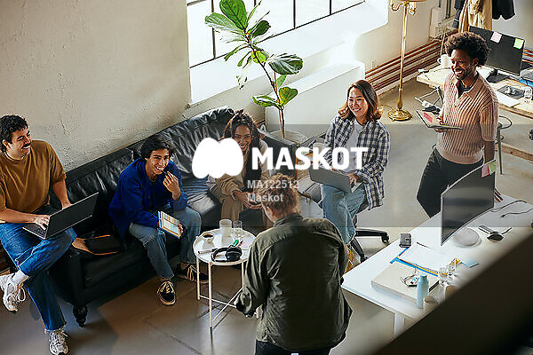 Manlig och kvinnliga entreprenörer jobbar på kontor