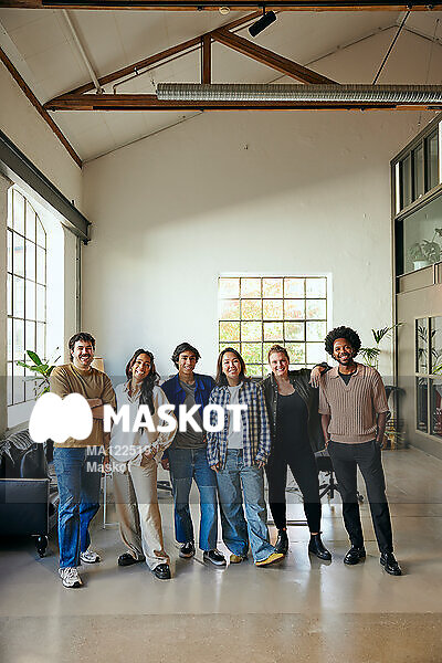 Porträtt av manliga och kvinnliga entreprenörer som står på kontor