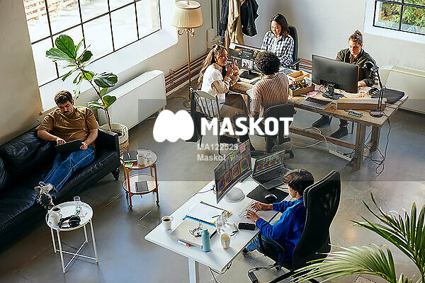 Manliga och kvinnliga entreprenörer jobbar på kontor