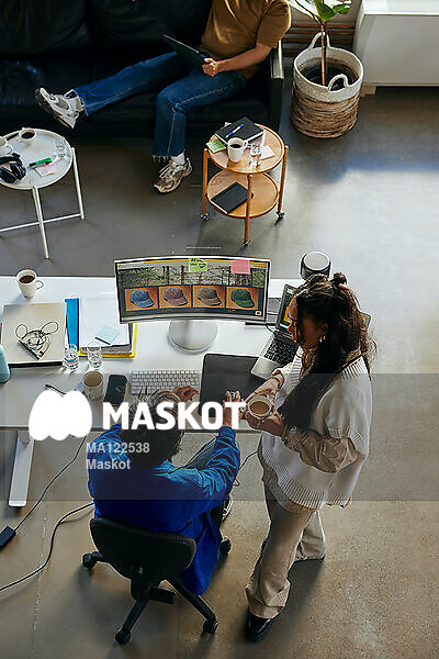 Kvinnlig entreprenör pratar med kollega på kontor