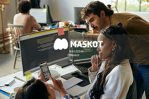 Manlig och kvinnlig entreprenör hjälper kollega