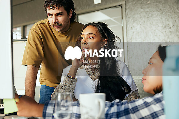 Manlig och kvinnlig entreprenör diskuterar