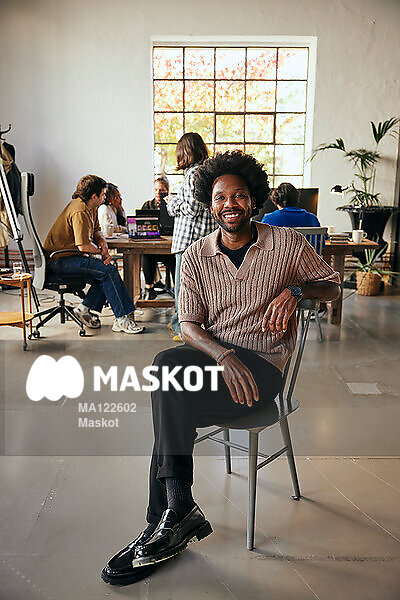 Porträtt av leende manlig entreprenör som sitter på kontor