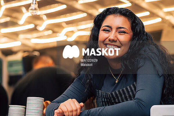 Porträtt av glad ung kvinna