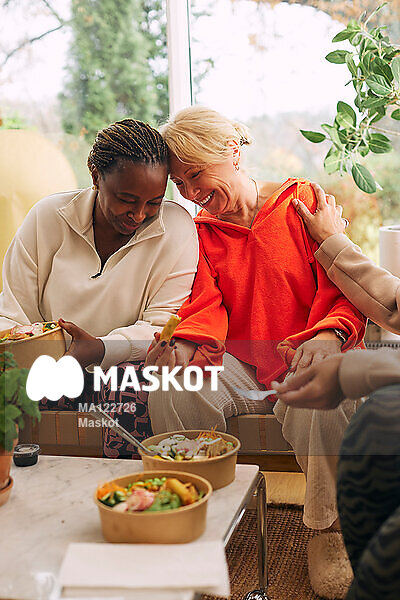 Glada kvinnor äter lunch tillsammans