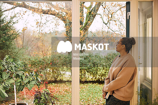 Äldre kvinna kollar ut genom fönster