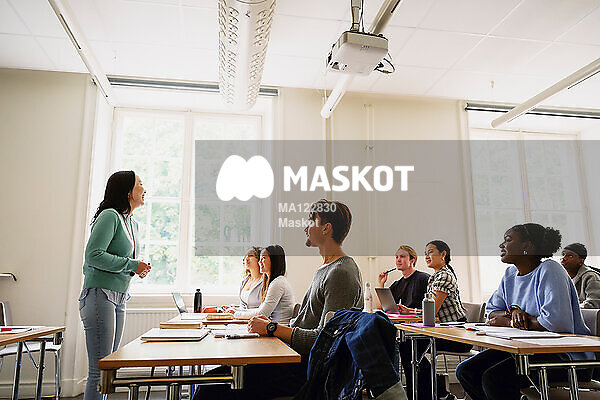 Kvinnlig professor undervisar elever i klassrum