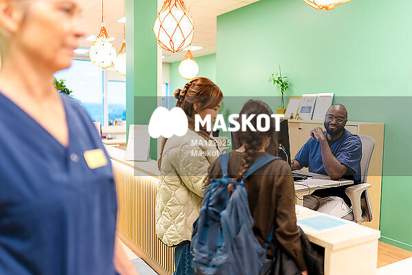 Manlig läkare hjälper mamma och dotter