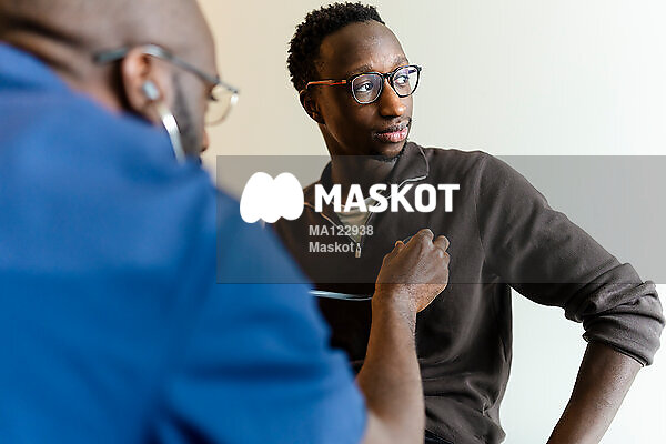 Manlig läkare undersöker ung patient