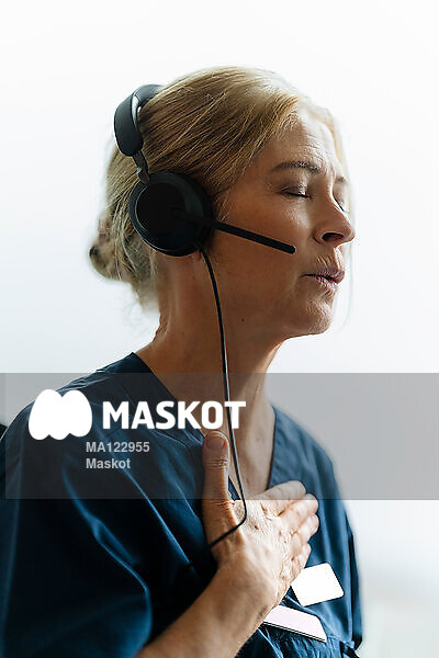 Kvinnlig läkare förklarar symtom för patient via videosamtal
