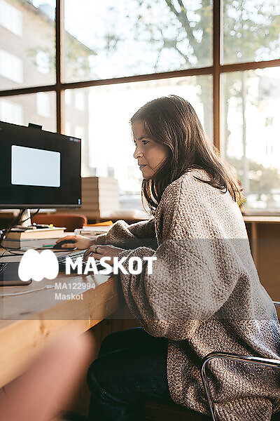 Fokuserad kvinnlig entreprenör skriver på tangentbord