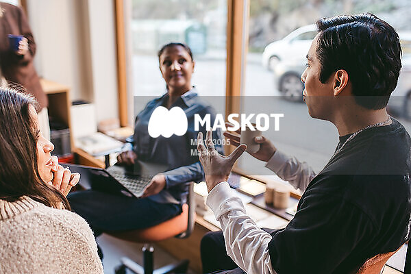 Manlig entreprenör förklarar för kollegor