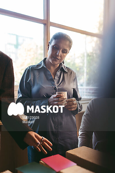 Kvinnlig entreprenör tittar på material
