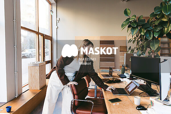 Kvinnlig designer står på kontor