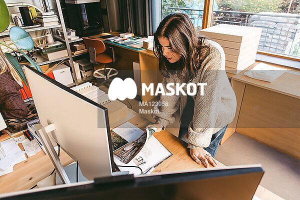 Kvinnlig designer står på kontor