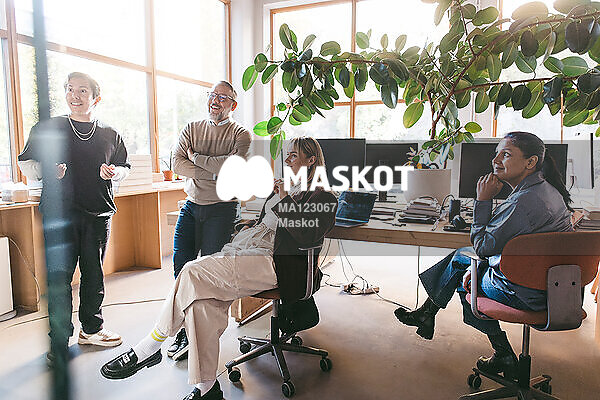 Manliga och kvinnliga entreprenör är på kontor
