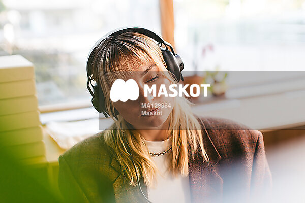 Fokuserad kvinnlig entreprenör sitter på kontor