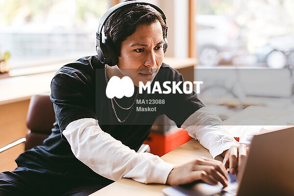 Fokuserad manlig entreprenör skriver på dator