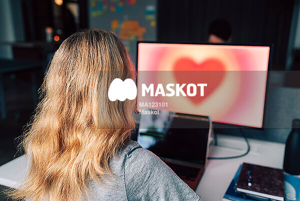 Ung kvinna med hjärta som bakgrundsbild på skräm