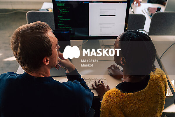Arbetskollegor samarbetar på jobbet