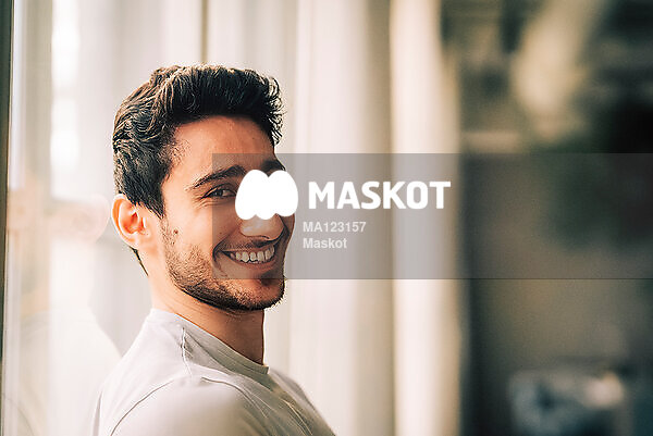 Porträtt av leende ung man på kontor
