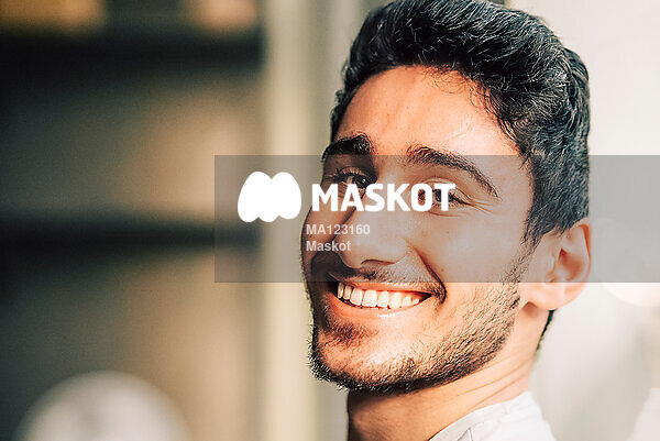 Porträtt av glad ung man på kontor