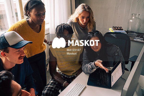 Manliga och kvinnliga kollegor diskuterar på kontor