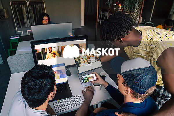 Manliga kollegor undersöker responsiv webbdesign