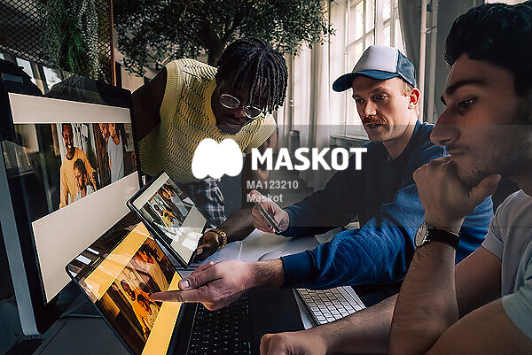 Manliga kollegor samarbetar med responsiv webbdesign