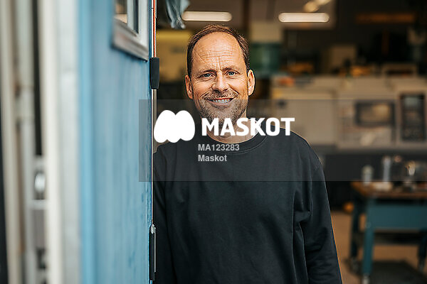 Porträtt av leende manlig fabriksarbetare