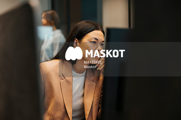 Koncentrerad affärskvinna jobbar på kontor
