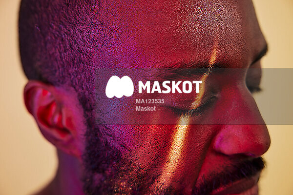 Rött ljus lyser på man som blundar