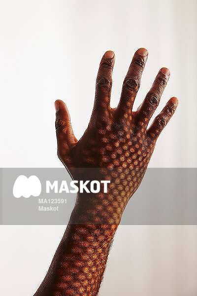Mönstrat solljus faller på hand