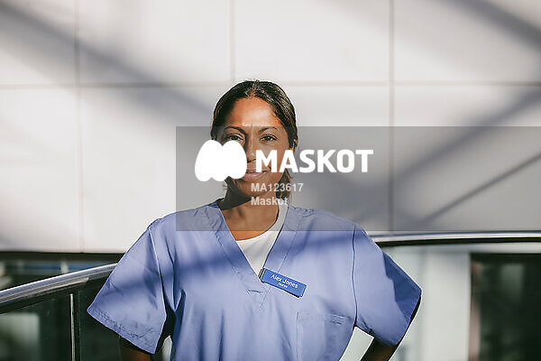 Porträtt av leende kvinlnig läkare