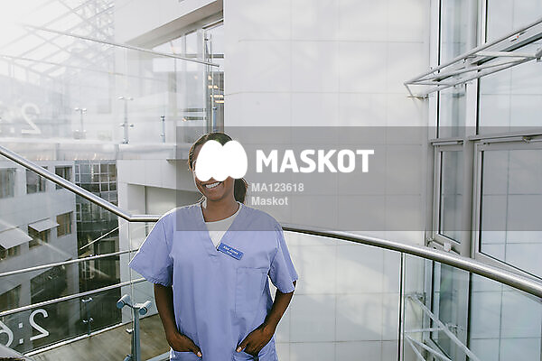Porträtt av glad kvinnlig läkare