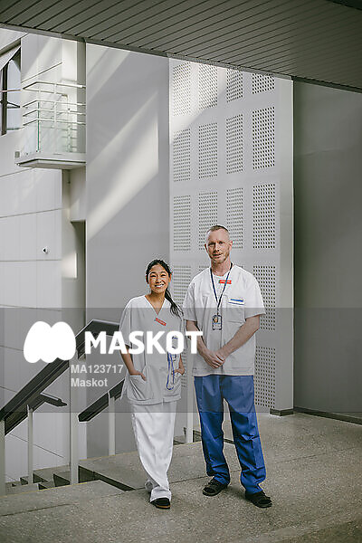 Porträtt av manlig och kvinnlig läkare