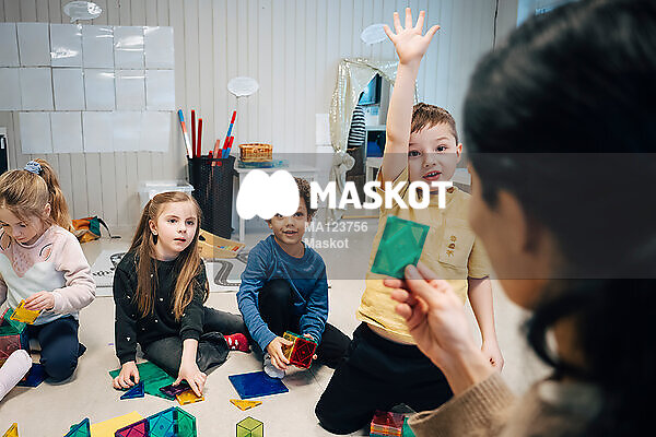 Ung pojke räcker upp hand